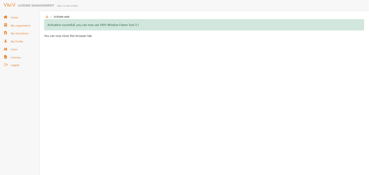 Eenmaal ingelogd, klik op "activate" om de trial licentie te activeren.